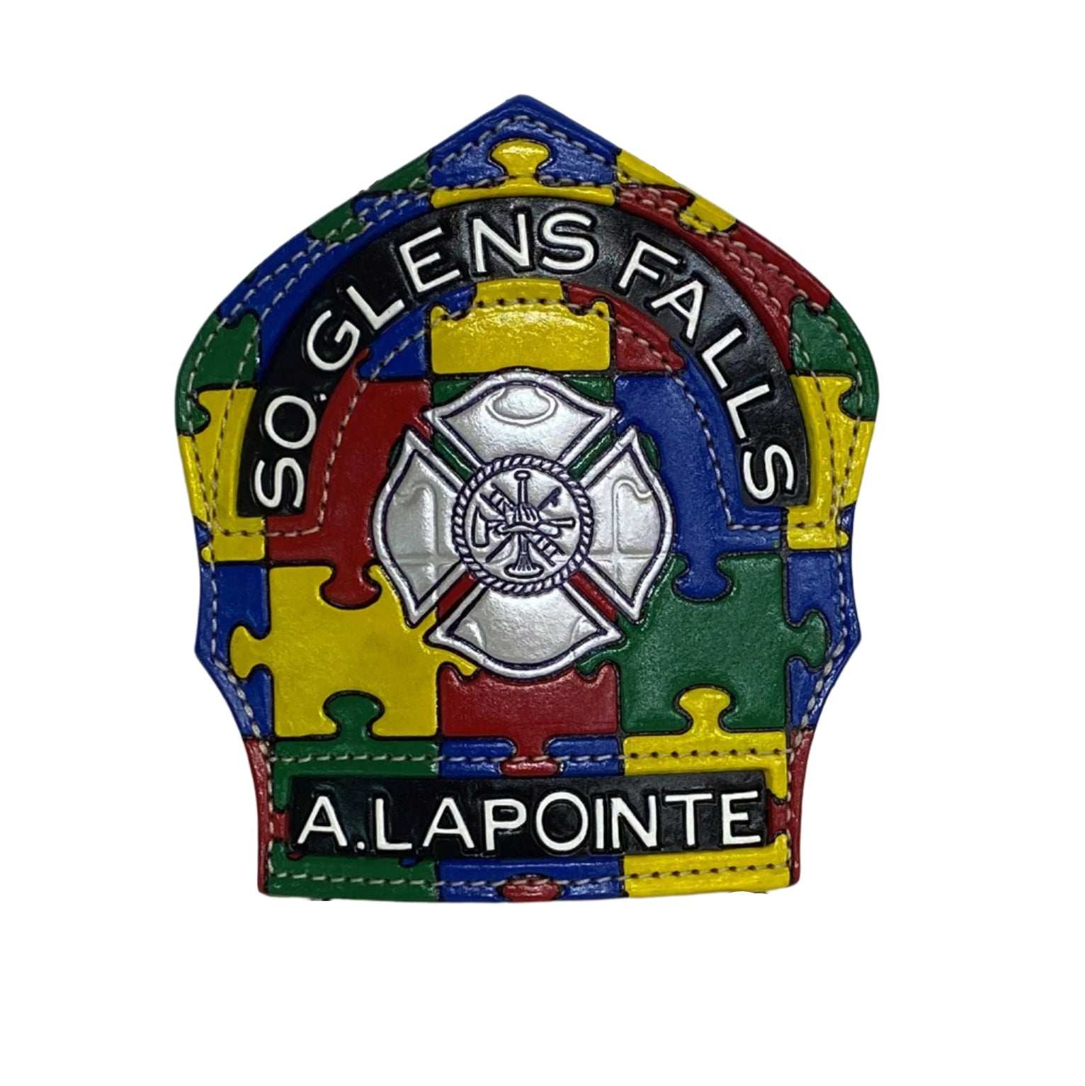 We accept orders for Autism Awareness leather helmet fronts from Black Friday to February 28th. This allows us to make and ship them so they arrive before April 1st for Autism Awareness Month.